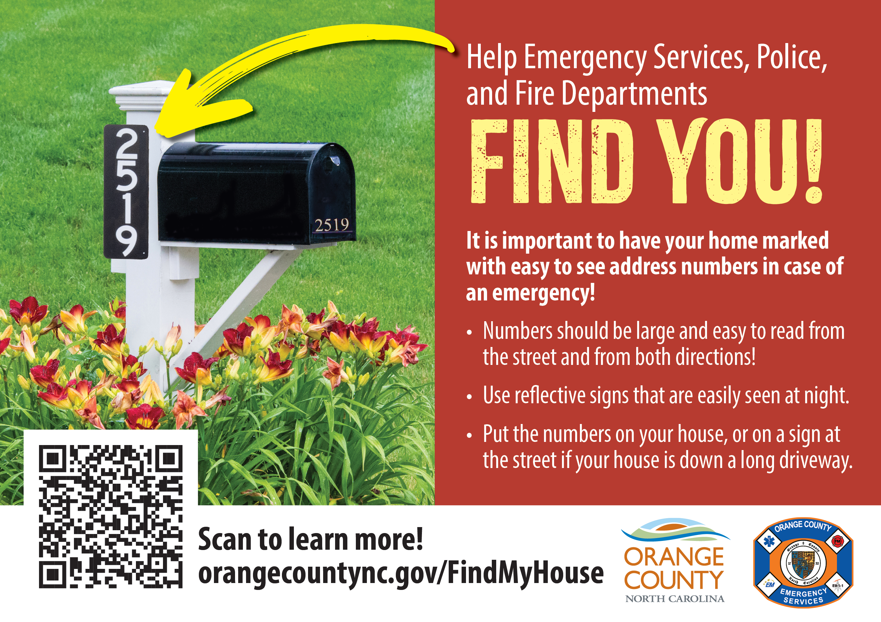 - Orange County: addressing@orangecountync.gov , call 919-245-2100, or LiveChat on our website