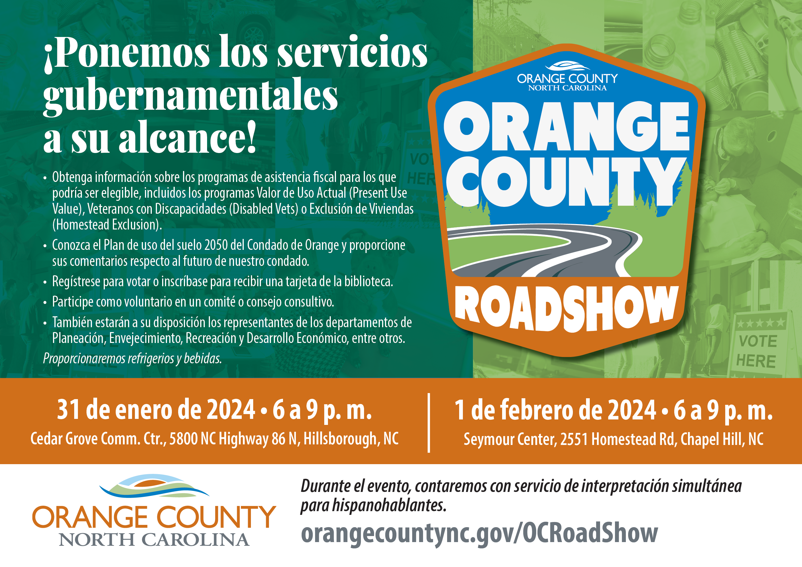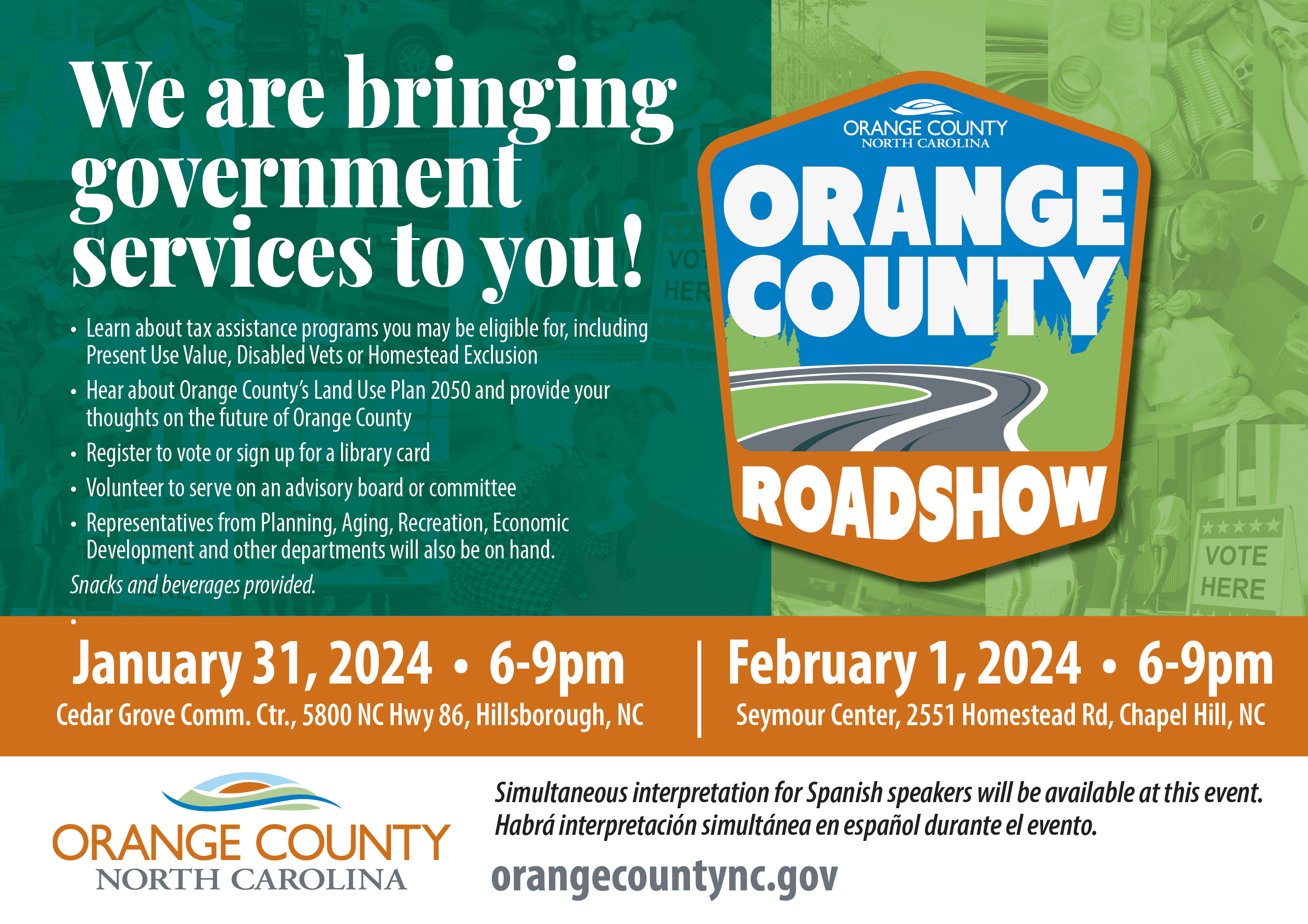 Welcome to Medicare ClassIf you’re turning 65 soon, you’re probably being bombarded by mailings about Medicare. This free class will provide valuable information whether you’re retiring soon, already retired, or continuing to work. You’ll learn how and when to enroll, potential penalties for late enrollment, Medicare’s costs, benefits, and options. Date: Mon, Feb 5; Time: 5:30 – 7 pm; Location: Chapel Hill Public Library, 100 Library Drive, Chapel Hill NC; Call: 919-968-2070; Fee: Free Date: Tue, Feb 20; Time: 6 – 7:30 pm; Location: Online presentation via Zoom Register: www.orangecountync.gov/Medicare101_feb ; Fee: Free For additional sessions in March, please visit our website www.orangecountync.gov/Medicare or call us at 919-245-4274.