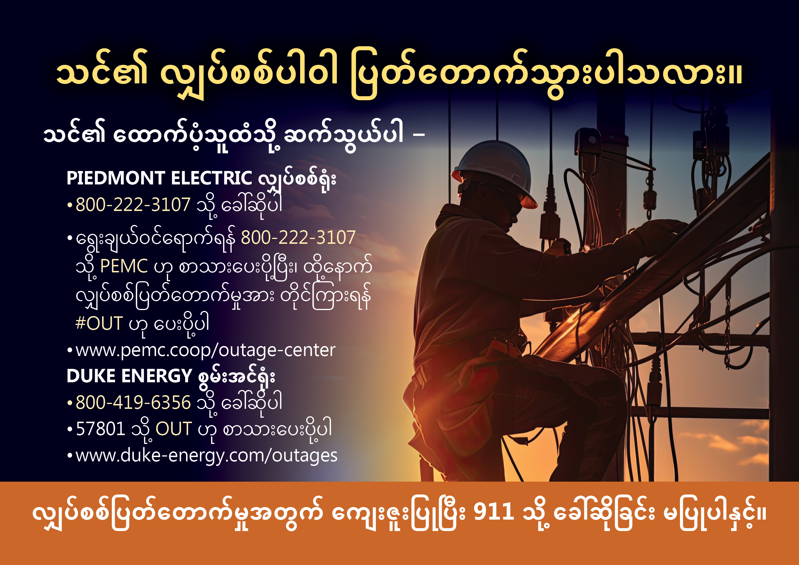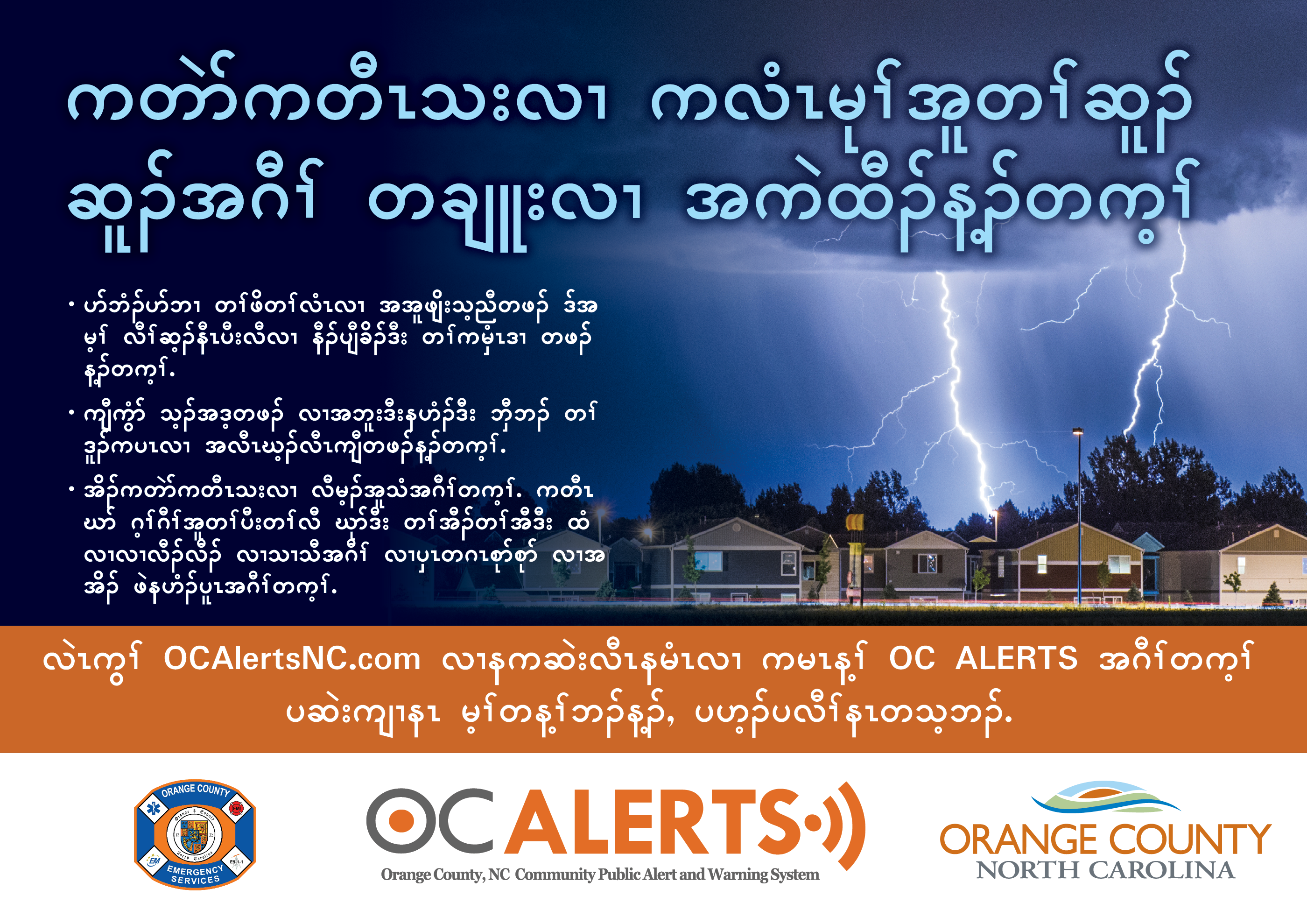 English; Spanish (English Titles); Chinese; Burmese; Arabic; Karen; Kinyarwanda